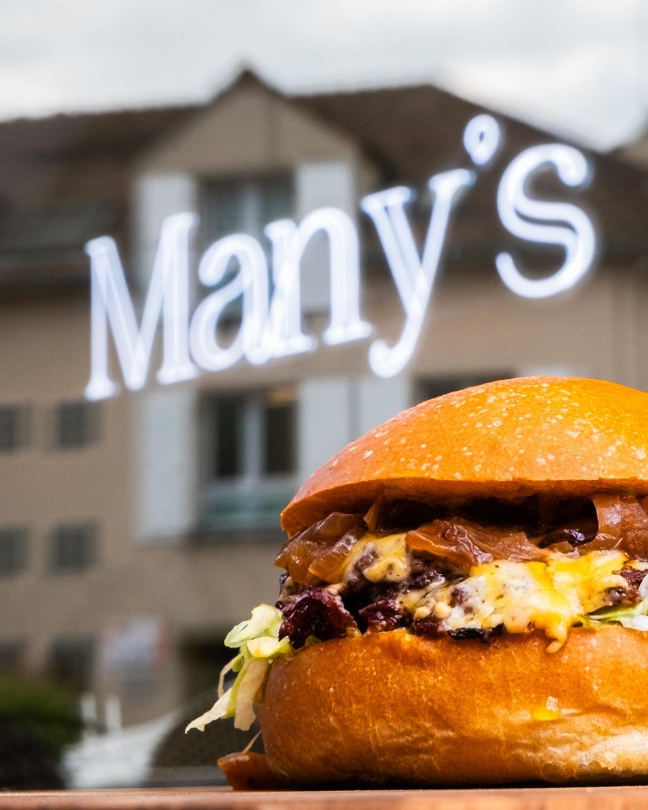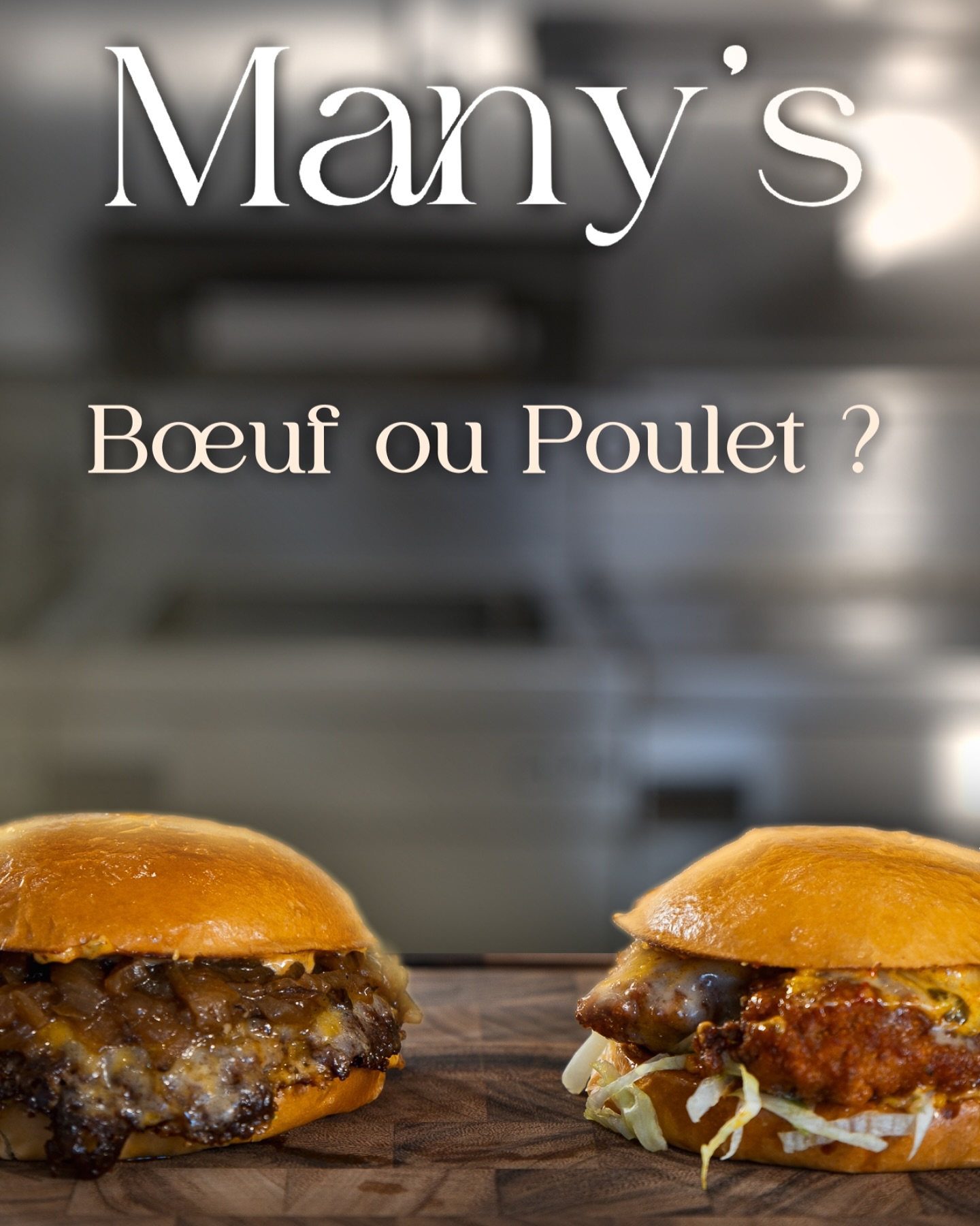 Chaque burger est préparé avec soin, utilisant des ingrédients frais et locaux pour garantir une explosion de saveurs à chaque bouchée. Que vous soyez amateur du classique cheeseburger, d'un burger végétarien ou d'une recette plus audacieuse, Many's propose une variété qui saura satisfaire tous les palais. Les viandes sont grillées à la perfection, les sauces maison sont élaborées sur place, et chaque burger est conçu pour offrir une expérience culinaire unique. Parmi les spécialités, vous pourrez déguster des burgers tels que le Boeuf Reblochon, le Boeuf Truffe, le Boeuf Chèvre miel, ainsi que des options comme le Double Cheese, le Poulet Gourmet et les Tenders, le tout accompagné de frites maison et de sauces savoureuses.